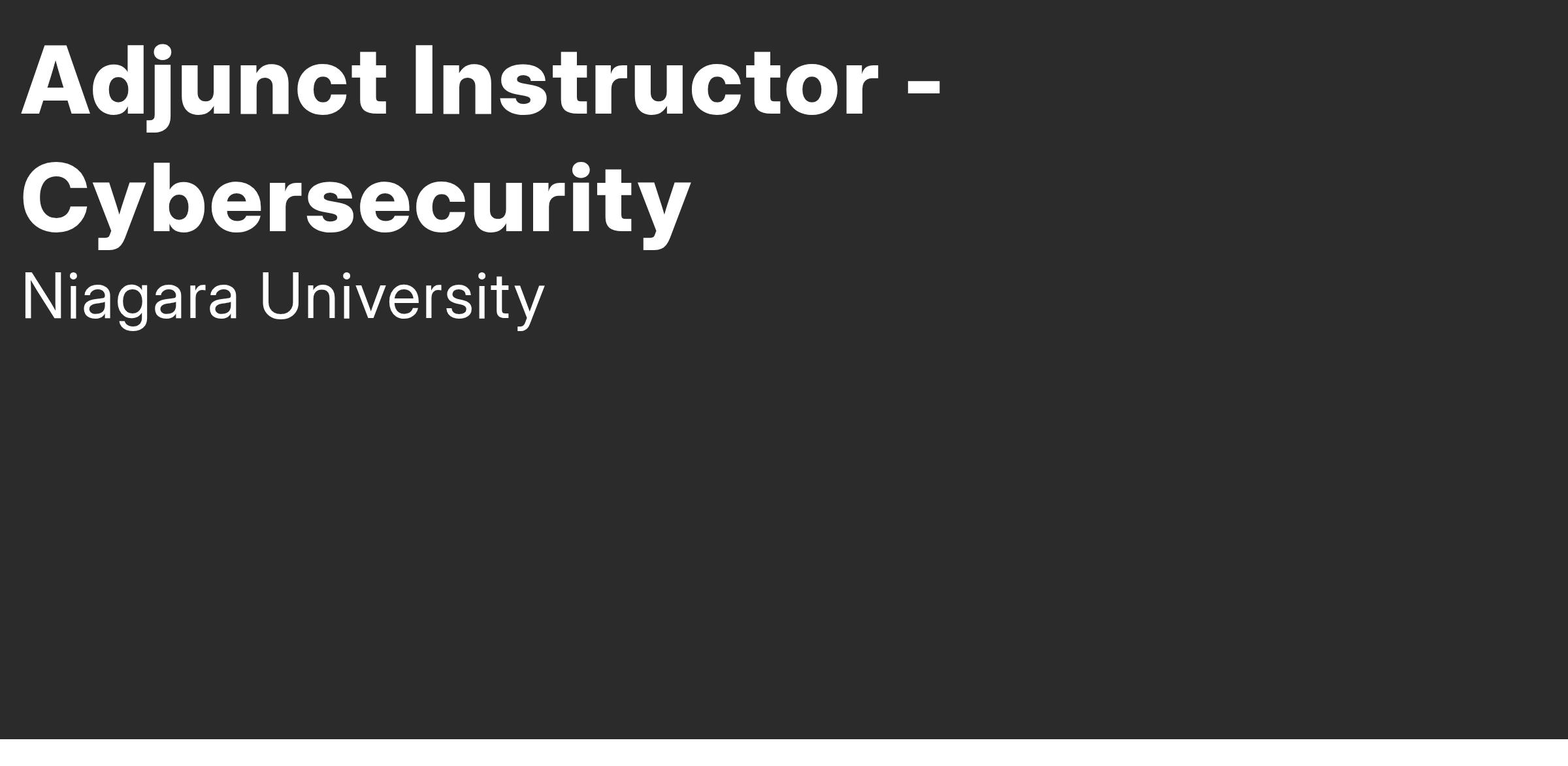 Niagara University's Vaughan campus invites applications for adjunct instructors with the expertise needed to teach the following courses in the Information Security and Digital Forensics program, starting in the Fall 2024 semester: