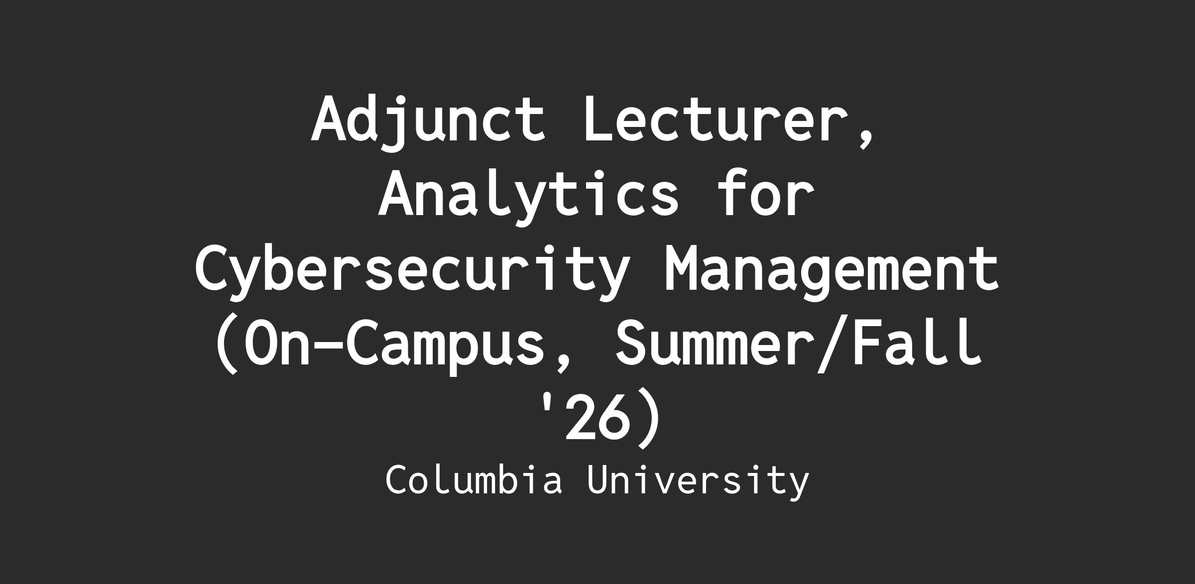 The School of Professional Studies seeks experienced industry professionals to serve as part-time LecturerΒ for a graduate-level course in Analytics for Cybersecurity Management. This course offers a comprehensive introduction to core cybersecurity principles, encompassing network security, threat detection, and vulnerability management, while highlighting how emerging techniques in AI and machine learning can transform modern defense strategies. Students will explore key frameworks, advanced tools, and real-world case studies, gaining insight into how analytics underpins effective threat intelligence, incident response, and regulatory compliance.