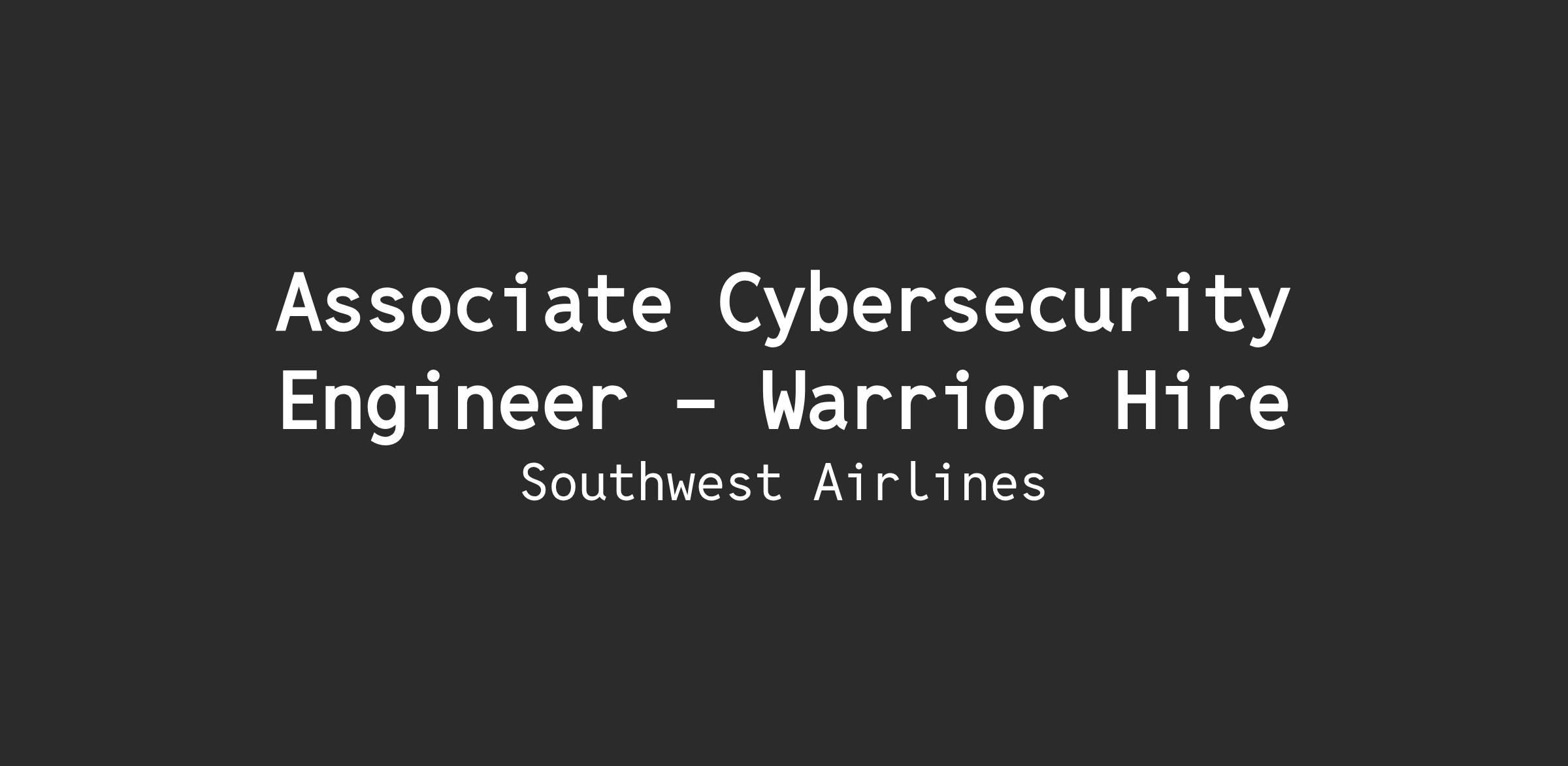 Access Management Team: As an Associate Cybersecurity Engineer supporting the Access Management Team, you’ll build and secure modern identity solutions that protect both Southwest Employees and Customers. Associate Cybersecurity Engineers work with Ping Identity, AWS, and a variety of coding languages to deliver capabilities like adaptive MFA, enhanced login experiences, and secure account enrollment. You’ll operate in an agile environment with strong collaboration, daily pairing, and shared problem solving. This is a supportive, growth focused Team that values curiosity, innovation, and engineers who go above and beyond.