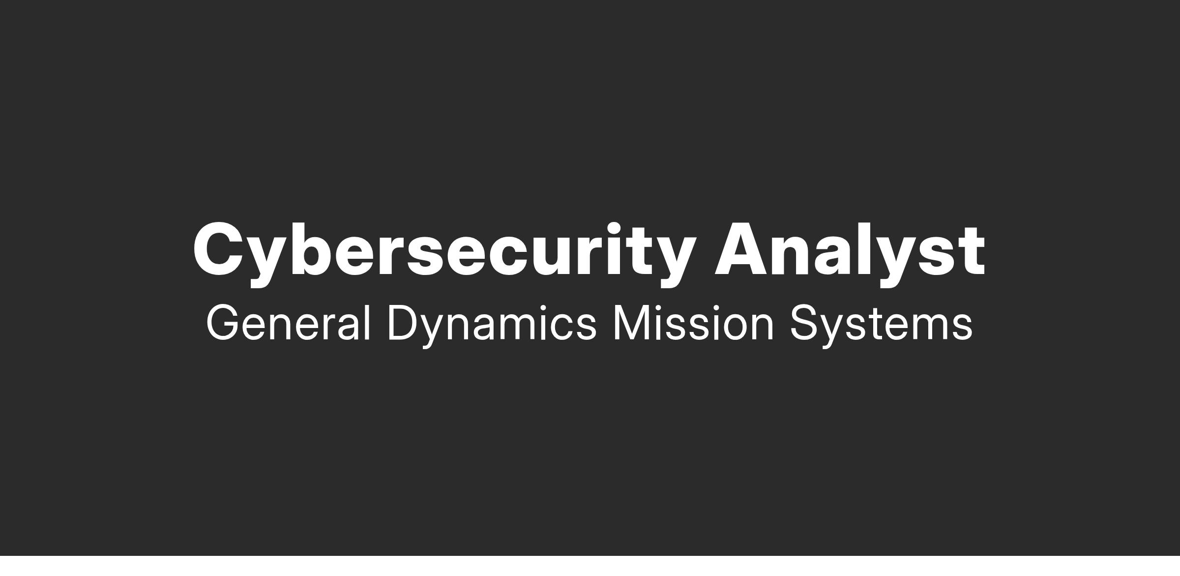 General Dynamics Mission Systems has an immediate opening for a cybersecurity analyst .Β This position provides an opportunity to further advance the cutting-edge technology that supports some of our nationβs core defense/intelligence services and systems.Β General Dynamics Mission Systems employees work closely with esteemed customers to develop solutions that allow them to carry out high-stakes national security missions.