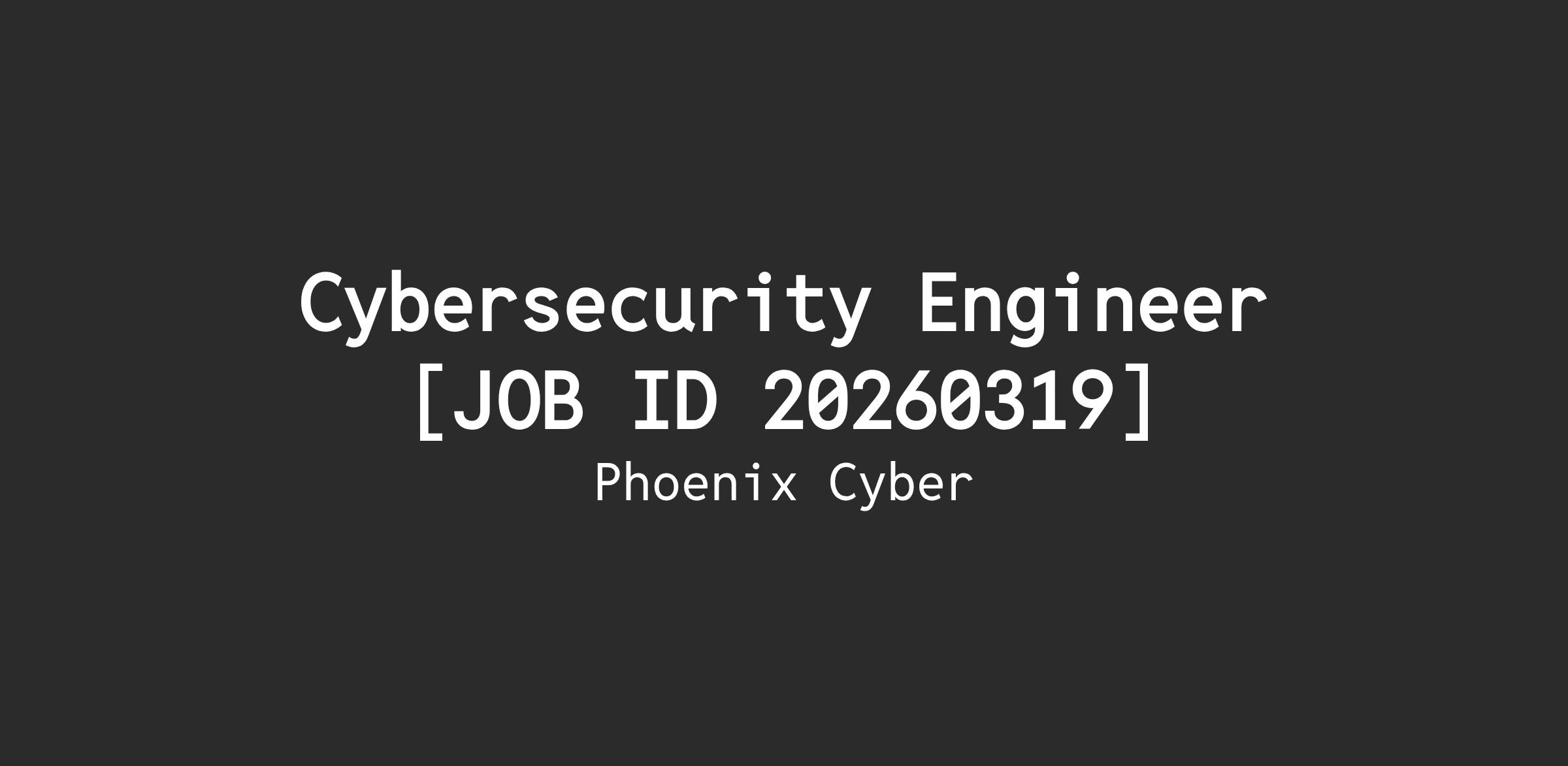 Cybersecurity Engineer [JOB ID 20260319]