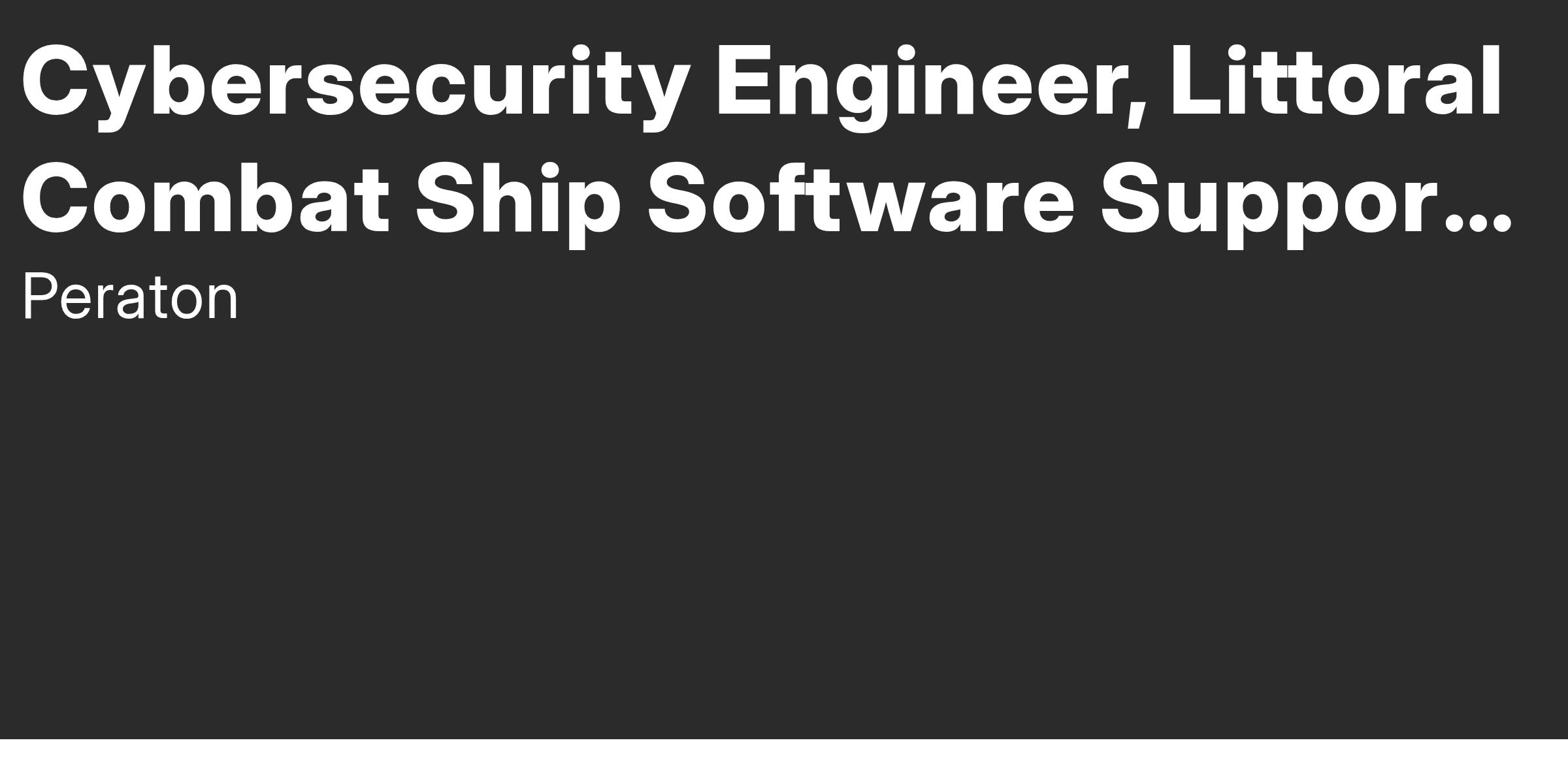 Are you ready to take your career to the next level while contributing to the defense of our nation? Peraton, a recognized leader in Cyber, Digital Transformation, Cloud, Operations, and Engineering, is seeking a skilled Cybersecurity Engineer, Littoral Combat Ship Software Support to support a world-wide national intelligence program. This role plays a crucial part in delivering mission-critical technology solutions to the U.S. Intelligence Community, supporting operations that safeguard our nation’s security. With the growing number of breaches of tactical and non-tactical computer systems, there is an increasing need to focus on the engineering aspects of CS. CS continues to be approached as compliance-based and this has not addressed significant shortcomings and vulnerabilities in the security of naval warfare systems and other service warfare systems. CS requirements must be included during the design, development, and sustainment phases of systems acquisition to ensure they are secure and Cyber-resilient throughout their Life-Cycle. Additionally, previously designed, and fielded systems must be evaluated on an engineering basis to determine potential changes to their design or supportability approaches.