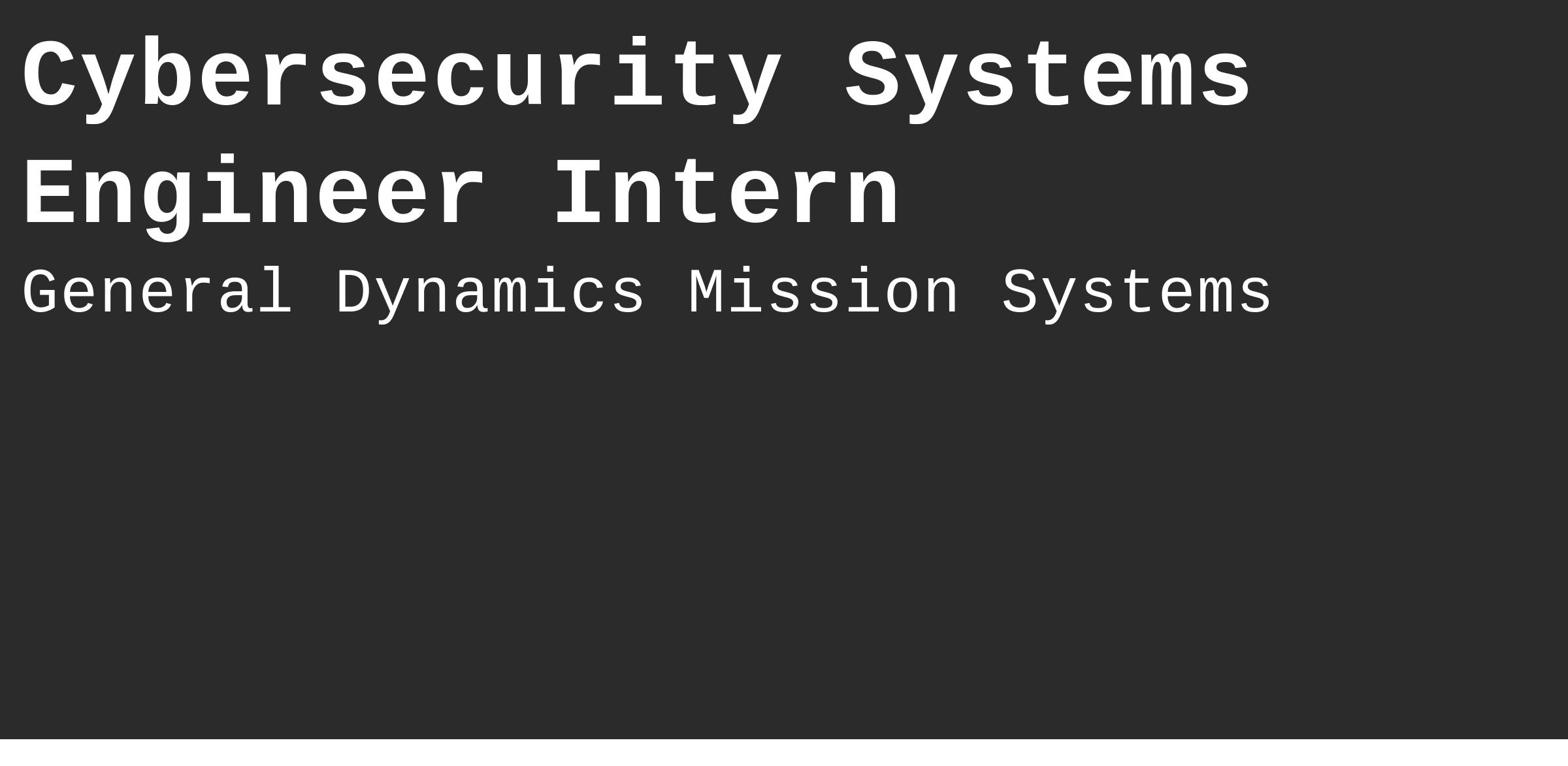 General Dynamics Mission Systems (GDMS) engineers a diverse portfolio of high technology solutions, products and services that enable customers to successfully execute missions across all domains of operation. With a global team of 12,000+ top professionals, we partner with the best in industry to expand the bounds of innovation in the defense and scientific arenas. Given the nature of our work and who we are, we value trust, honesty, alignment and transparency. We offer highly competitive benefits and pride ourselves in being a great place to work with a shared sense of purpose. You will also enjoy a flexible work environment where contributions are recognized and rewarded. If who we are and what we do resonates with you, we invite you to join our high-performance team!