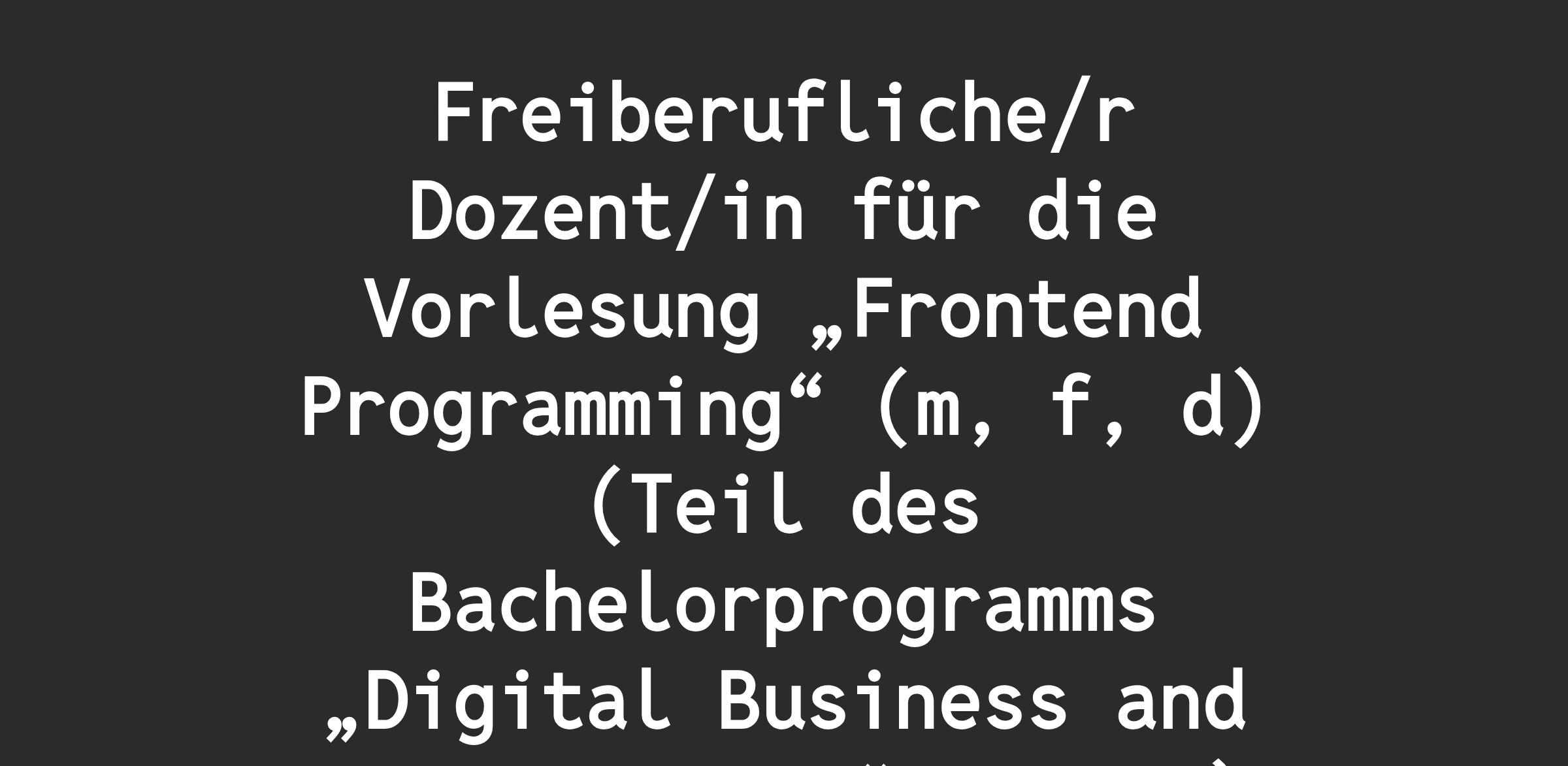 Freiberufliche/r Dozent/in für die Vorlesung „Frontend Programming“ (m, f, d) (Teil des Bachelorprogramms „Digital Business and Data Science“, B.Sc.)
