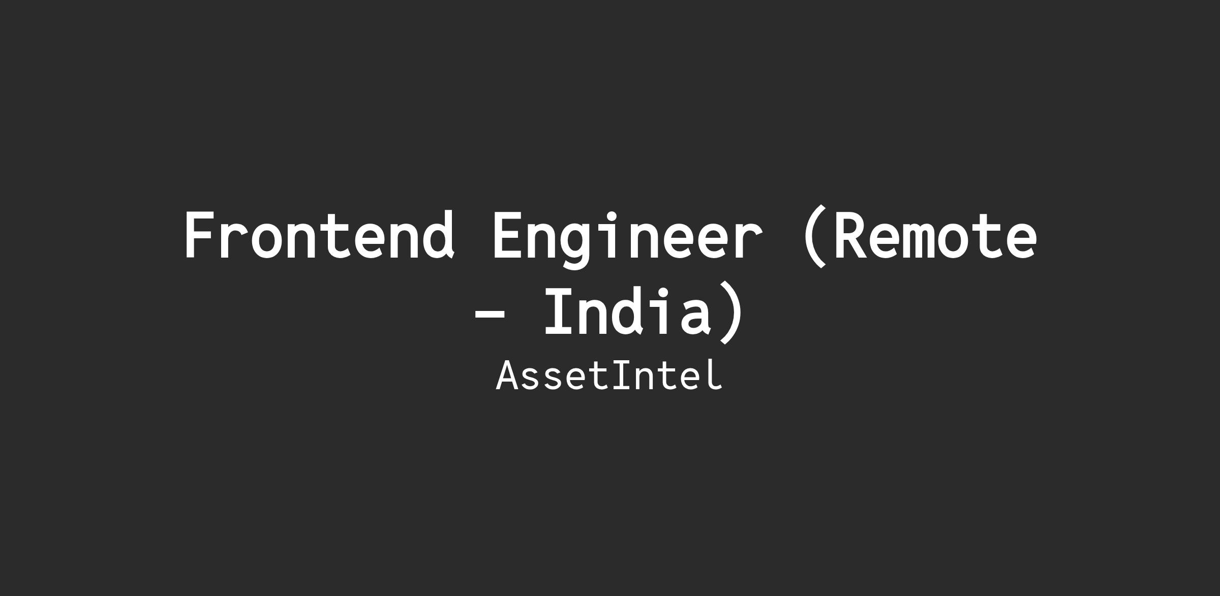 At AssetIntel, we believe that every developer is responsible for code ownership.. As a Frontend Developer, you will work on one or more React-based applications. You will have the opportunity to: