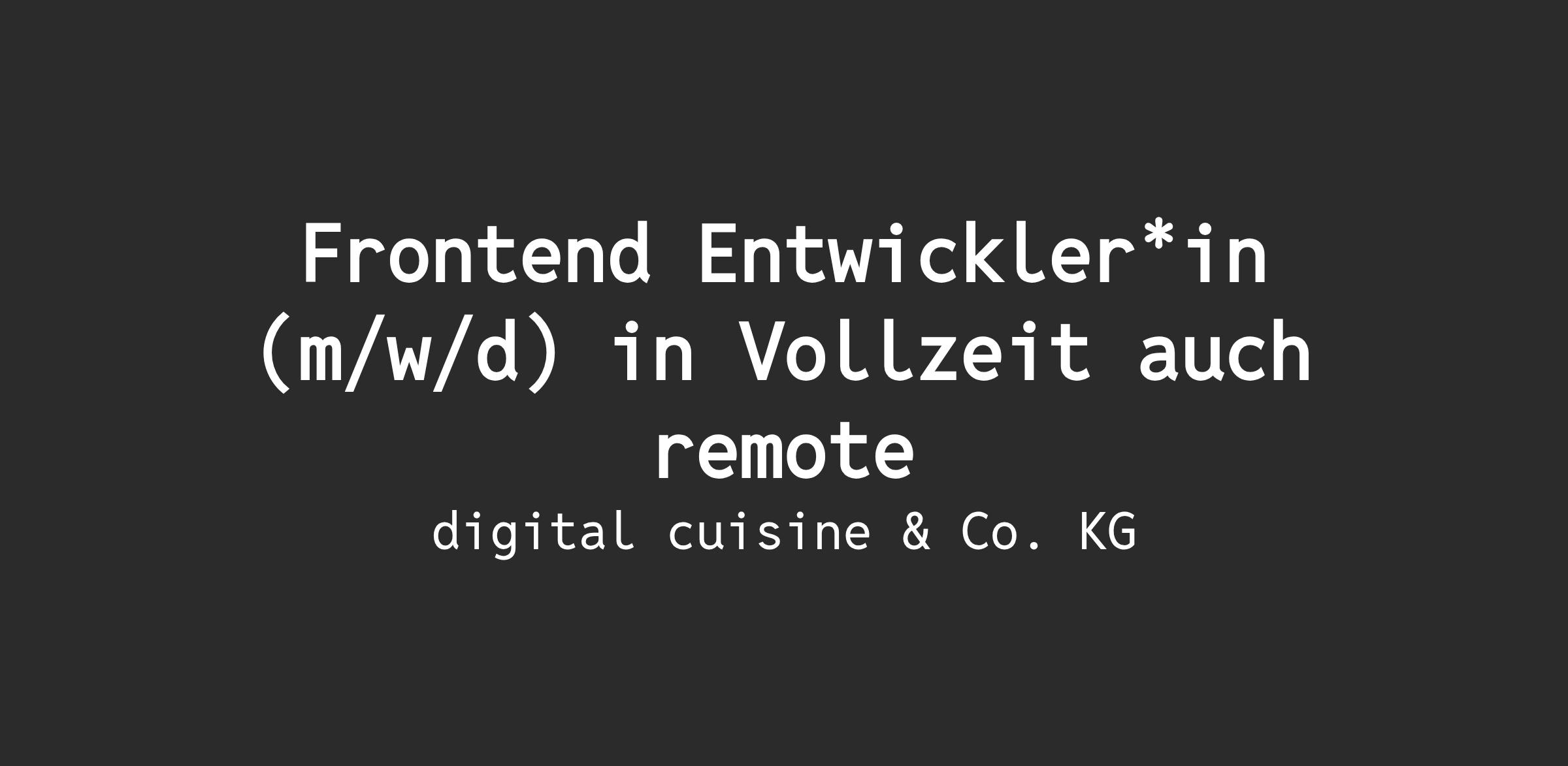 Frontend Entwickler*in (m/w/d) in Vollzeit auch remote