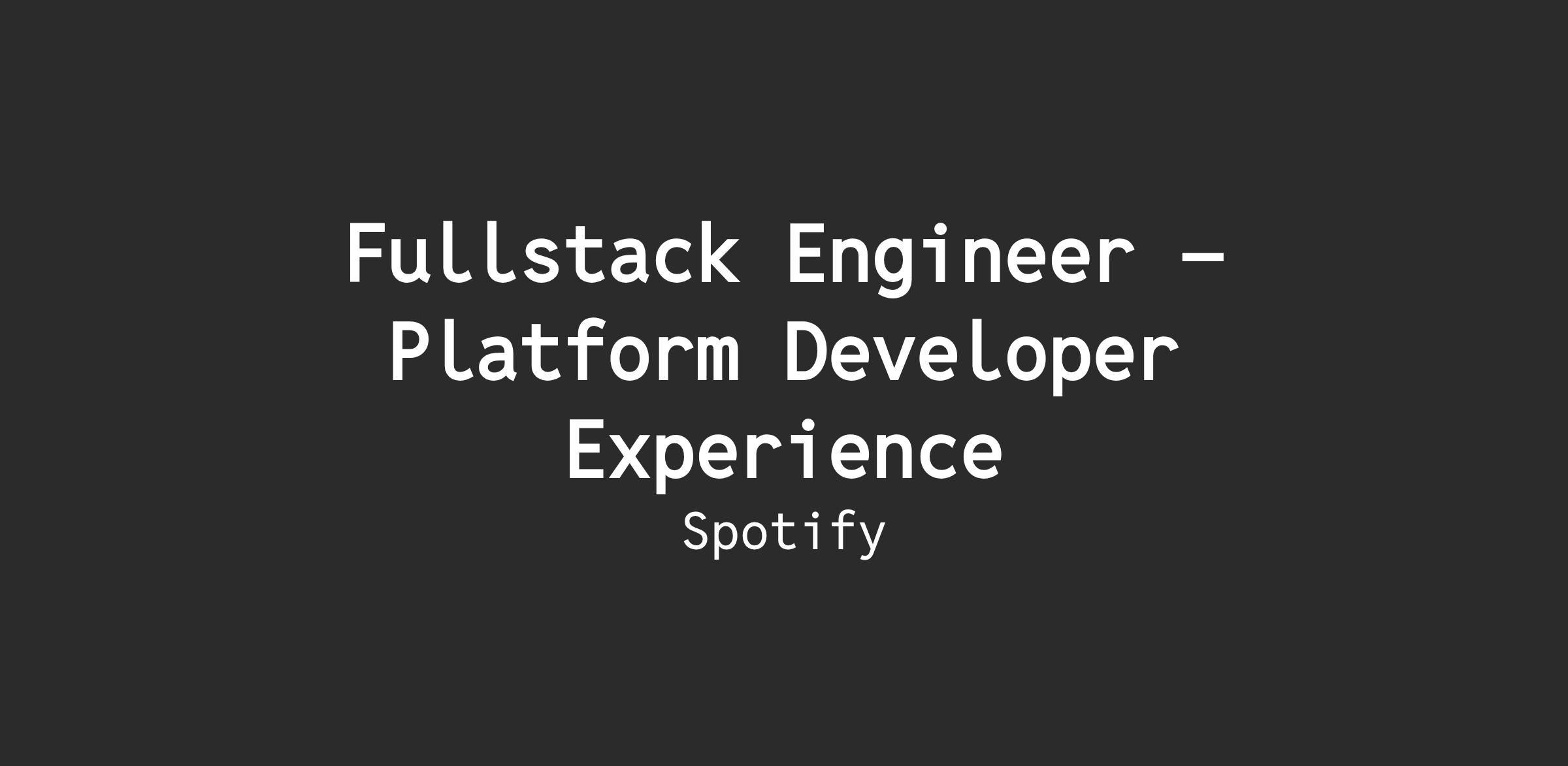 We’re looking for a Fullstack Engineer to join our Platform Developer Experience team. This group is passionate about building the best possible developer experience for Spotifiers and thousands of developers around the world.
