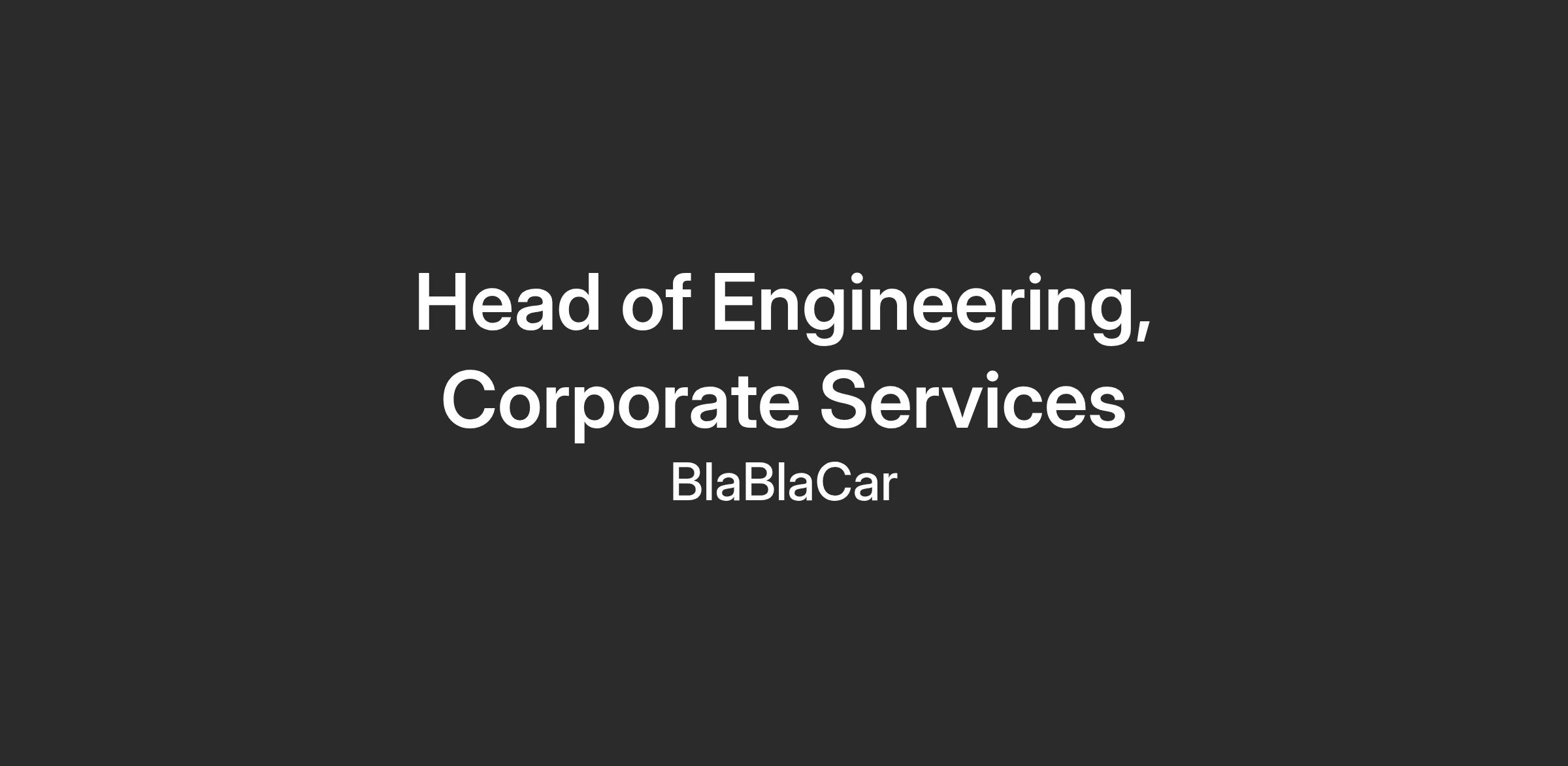 As Head of Engineering, Corporate Services, you will be responsible for defining and executing the BlaBlaCar’s Tech strategy around internal tooling and services, ensuring it aligns with our overall business objectives.