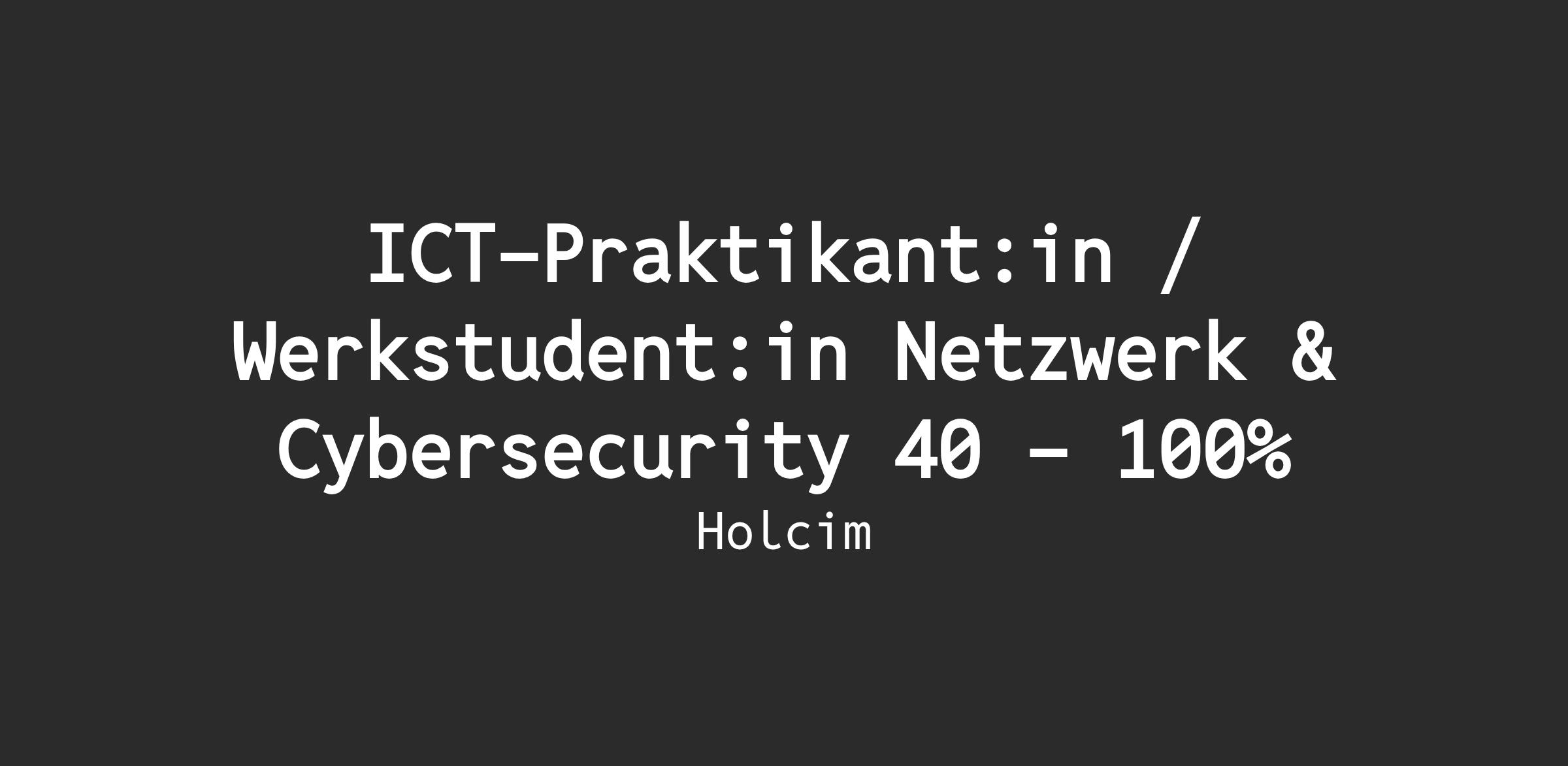 Um Themen wie Digitalisierung und zukunftsorientierte Cybersicherheit in die Praxis umzusetzen, suchen wir für unseren Standort im Zementwerk Siggenthal eine motivierte und technisch versierte Persönlichkeit. Das Pensum ist flexibel zwischen 40 % und 100 % wählbar, die Einsatzdauer beträgt 6 bis 12 Monate.