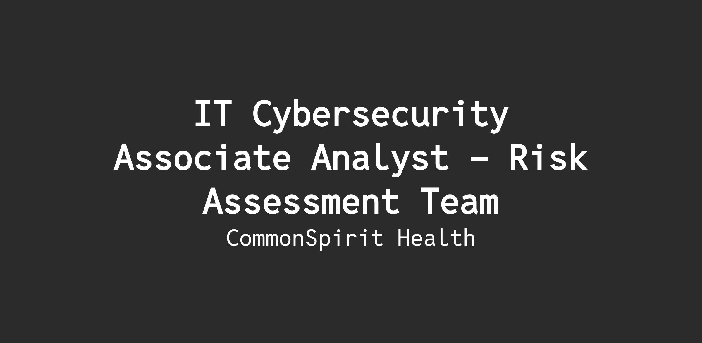 The Associate Cybersecurity Analyst, Risk Assessment position will report to the Manager, Governance, Risk and Assurance as part of the Risk Assessment team, assessing and communicating the risk of software solutions and medical devices hosted or used by CommonSpirit Health as well as the risk from its vendors which host, process, or have access to sensitive CommonSpirit data assets.