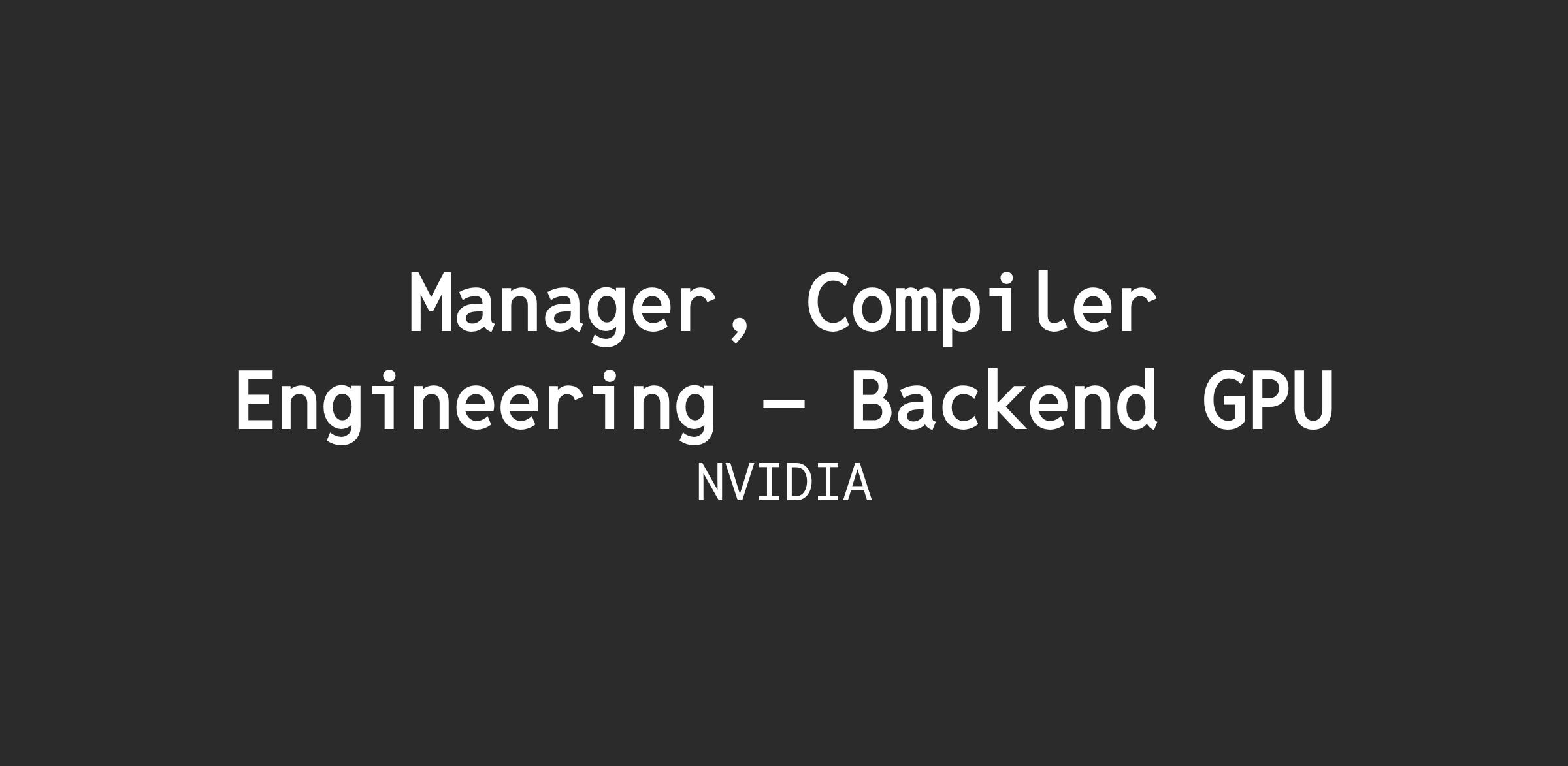 We are searching for an accomplished technical leader/manager for an exciting and fun role in our GPU software organization. We deliver features and improvements to better realize the potential of NVIDIA hardware for a growing range of computational workloads, ranging from deep learning, scientific computation, and self-driving cars to video games and virtual reality. Our compiler organization makes its mark on every GPU NVIDIA produces. In this role you will use your compiler expertise coupled with your management experience to help the engineering team working on back-end compiler for NVIDIA's GPUs, successfully achieve business goals. This work spans a wide range of applications areas, with multiple different compilers providing the input into our back-end compiler. Each of these areas can require different strategies to meet their needs, while ensuring support of a product that targets the same GPU. You will be solving critical problems working alongside some of the top valued diverse minds in GPU computing and systems software, doing what you enjoy. If this sounds like a fun challenge, we’re eager to get in touch with you!