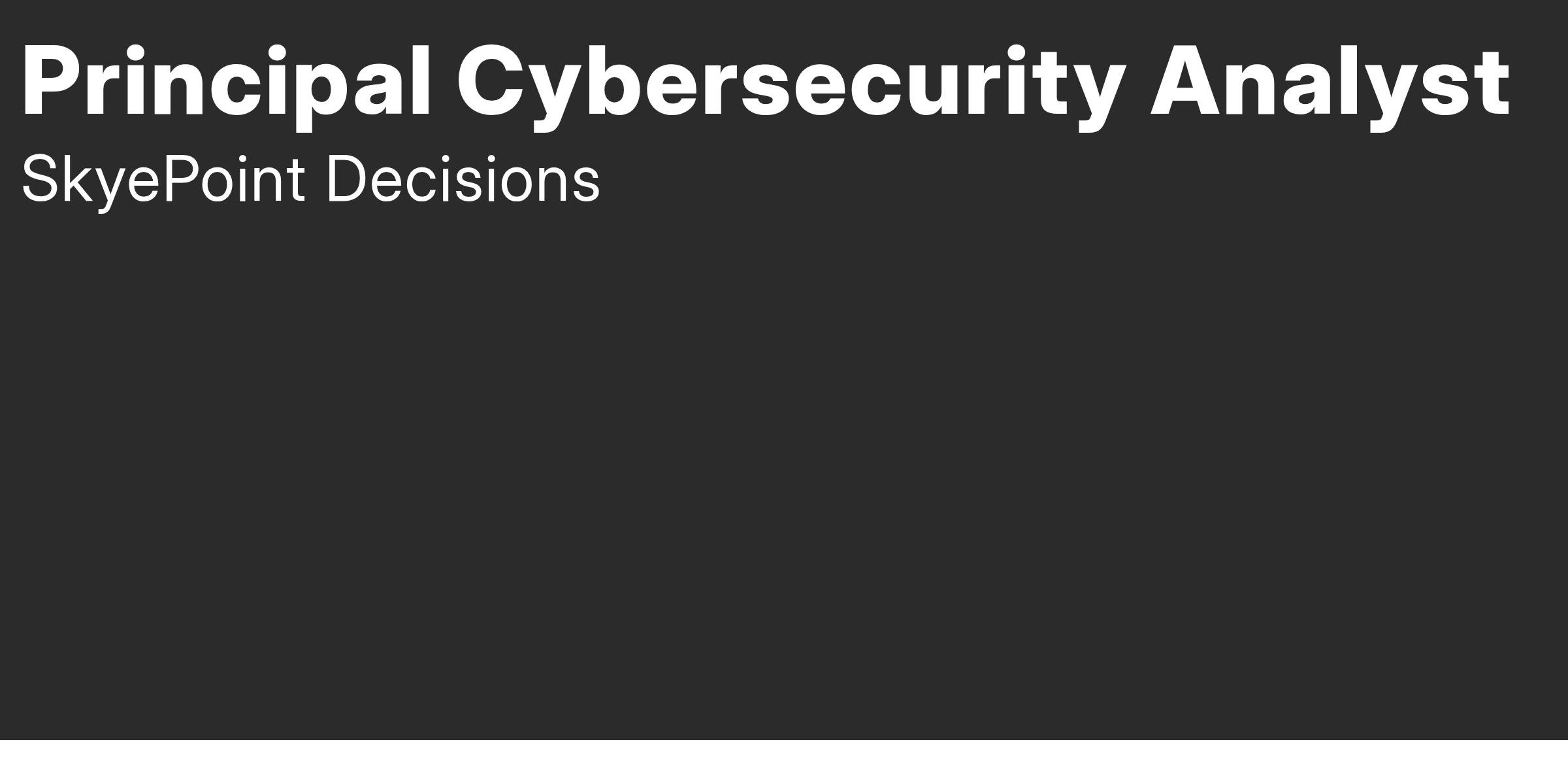 Skyepoint Decisions is seeking a Principal Cybersecurity Analyst to support the Department of State (DOS) Diplomatic Security Cyber Mission (DSCM) program. The DSCM program encompasses technical, engineering, data analytics, cyber security, management, operational, logistical and administrative support to aid and advise DOS Cyber & Technology Security (CTS) Directorate. This includes protecting a global cyber infrastructure comprising networks, systems, information, and mobile devices all while identifying and responding to cyber risks and threats. Those supporting the DSCM program strive to leverage their expert knowledge and propose creative solutions to real-world cybersecurity challenges.