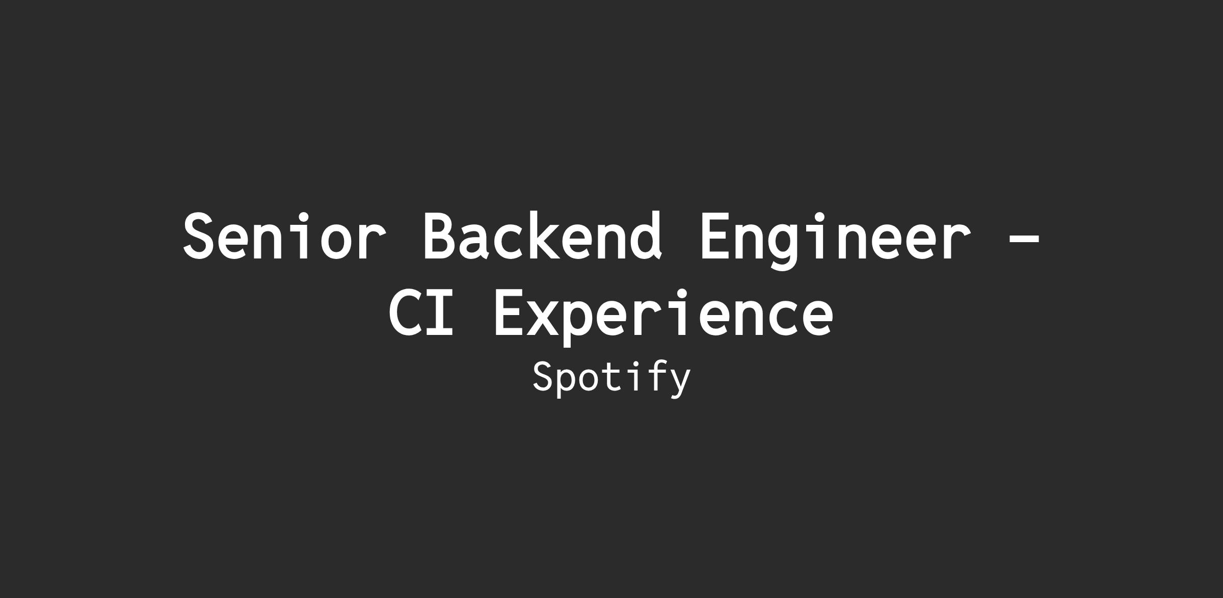The CI Experience squad owns the client continuous integration (CI) infrastructure at Spotify. Our mission is to ensure smooth, reliable, and fast integration of code changes across all client repositories. We provide the tooling, documentation, and support that empower client engineers to build, test, and ship confidently.