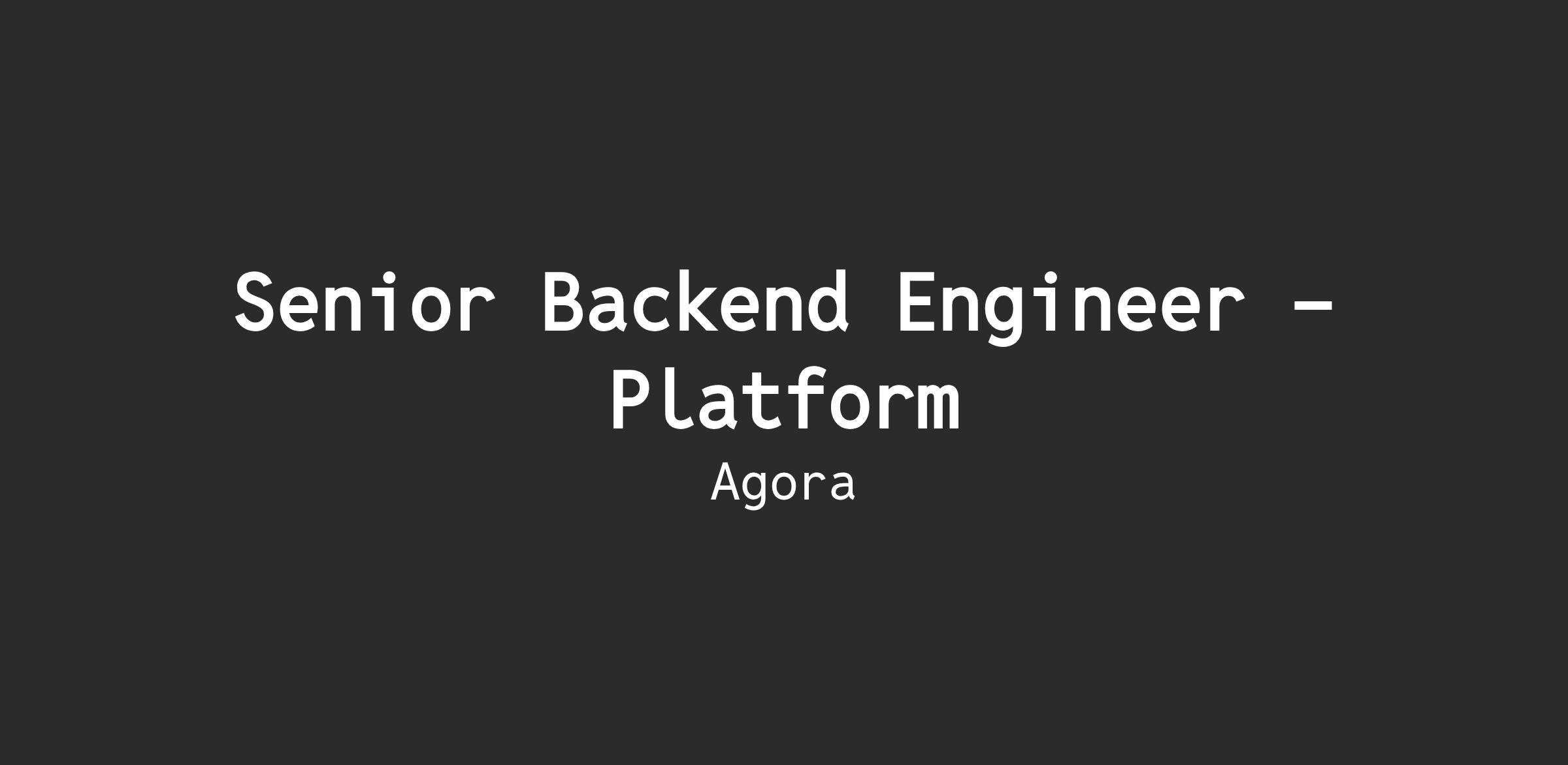 We are looking for a Senior Backend Engineer to join our Backend Infrastructure team. In this high-impact role, you will be pivotal in shaping the foundations that enable all of Agora's developers to build and ship software effectively. You will be responsible for designing, building, and owning the scalable backend services that form our core infrastructure—such as authentication, data pipelines, public APIs, and asynchronous job systems. You will also champion our Developer Experience (DevEx) by creating common libraries, building internal tools, and setting engineering best practices. This role requires leading complex technical projects from architecture to deployment, driving improvements in platform scalability and performance, and collaborating closely with other engineering teams, DevOps, and Product to deliver foundational solutions that move the needle.