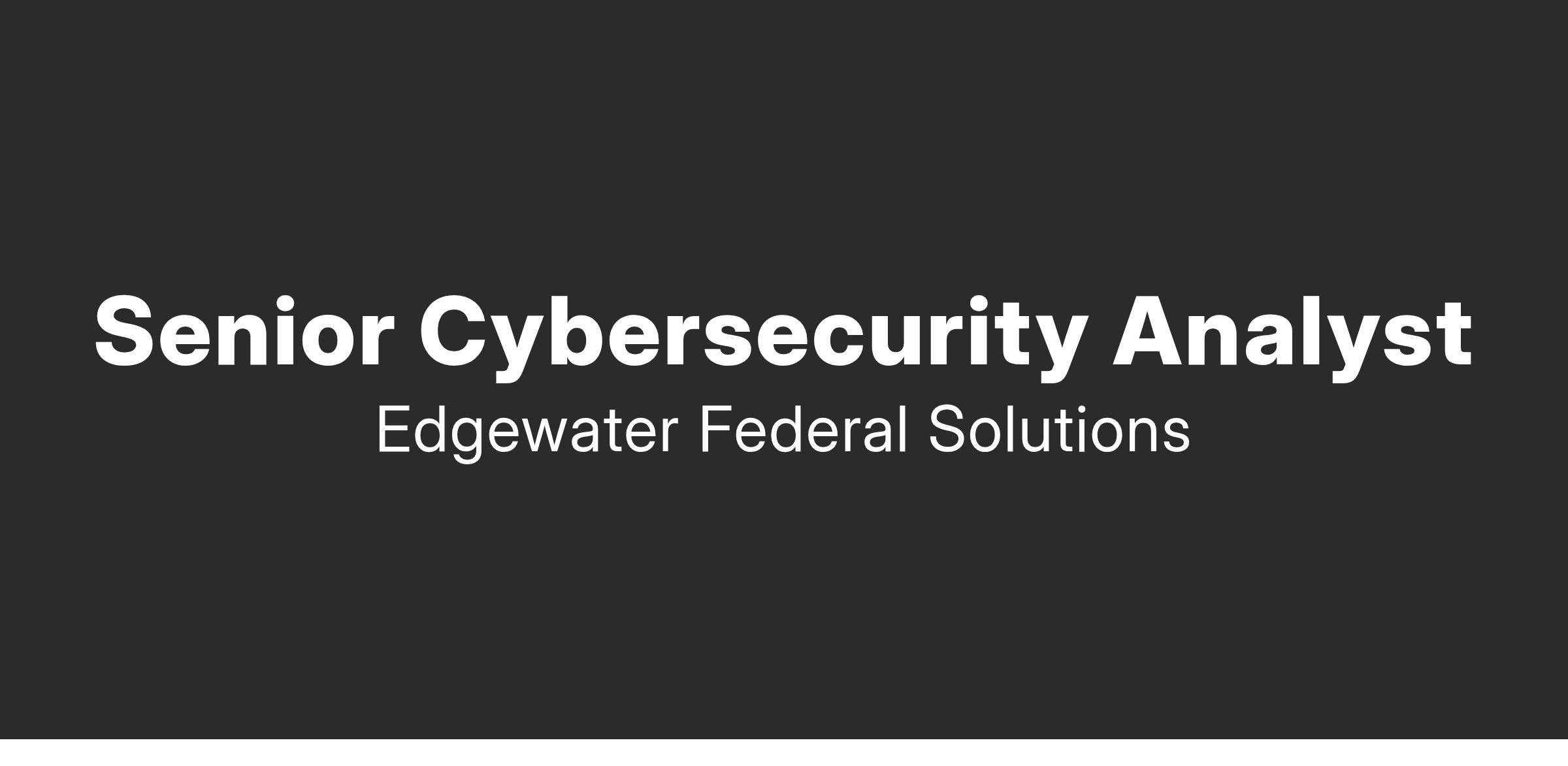 Edgewater Federal Solutions seeks an experienced Senior Cybersecurity Analyst.  This role will act as the administer and maintain logic for a variety of intrusion detection, prevention, and analysis platforms.