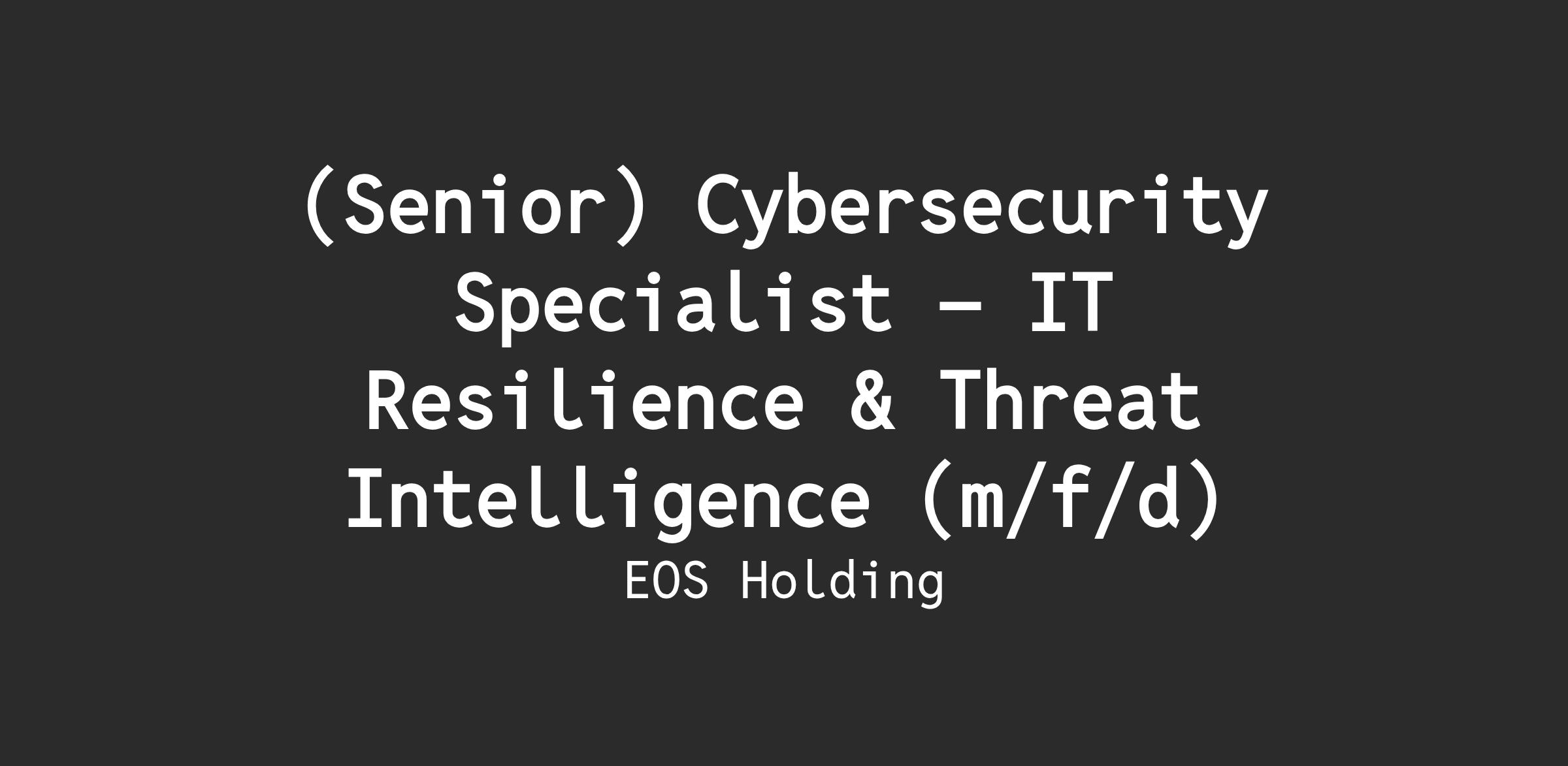 (Senior) Cybersecurity Specialist – IT Resilience & Threat Intelligence (m/f/d)