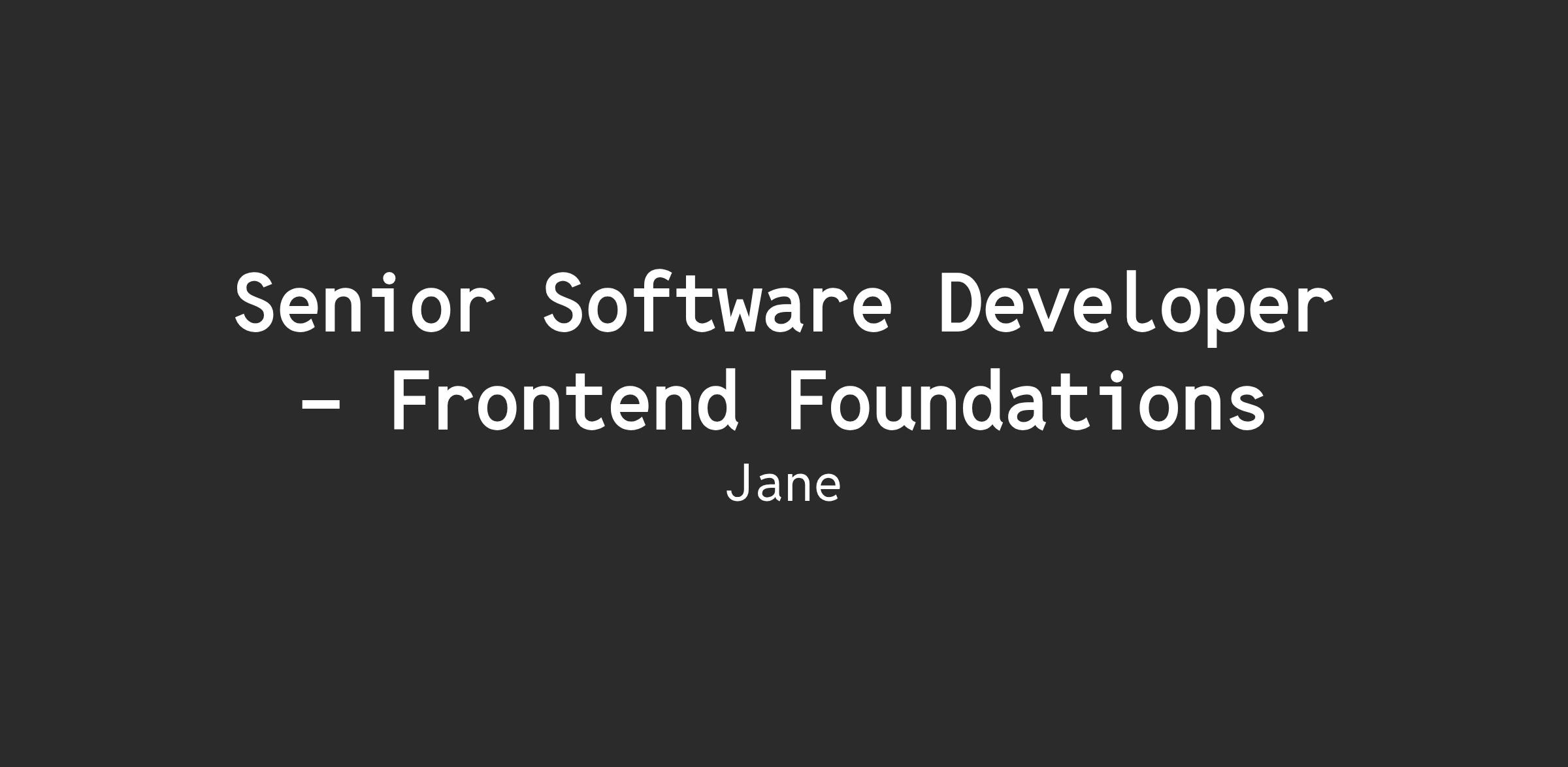 Hi, I'm Hunter, the Development Manager for the Frontend Foundations team at Jane. The thing I care most about is simple: building an environment where the people around me can do the best work of their careers.
