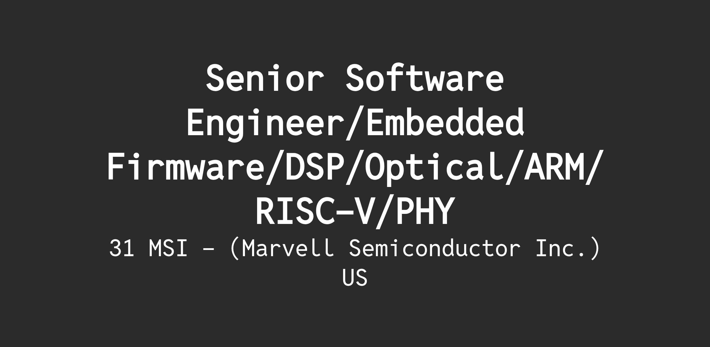 The Optical Digital Signal Processing (ODSP) PHY SW Team develops software for Marvell's DSP products used in pluggable optical modules—chips that form the backbone of the internet, moving data within and between data centers worldwide. Marvell is the market leader in direct-detect optical DSPs (100G to 1.6T), with products deployed in every major cloud data center and AI cluster. We own all SW components, including embedded FW, customer SDK, and lab scripts, and we're the go-to group for getting things done across the entire product lifecycle—from pre-silicon simulation through field deployment.What You Can Expect