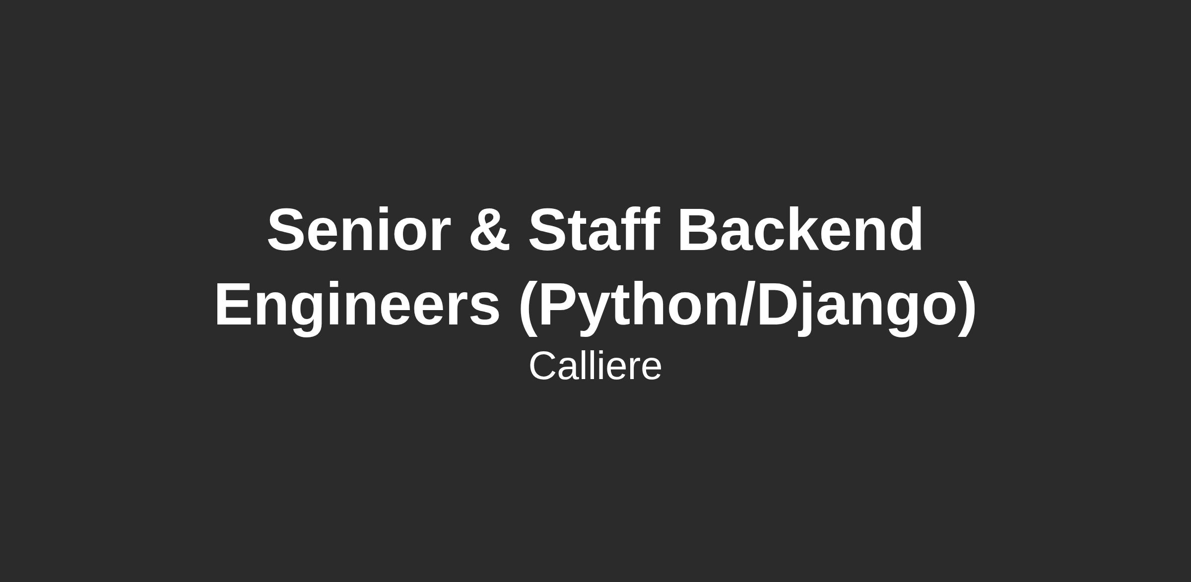 <\/html>"}}],"isMobile":false,"iframe":"true","jobType":"Full time","applyName":"Apply Now","zsoid":"688258619","FontFamily":"Verdana, Geneva, sans\-serif","jobOtherDetails":[{"fieldLabel":"Salary","uitype":1,"value":"Up to $220,000 USD + Amazing Perks."},{"fieldLabel":"Industry","uitype":2,"value":"Technology"},{"fieldLabel":"City","uitype":1,"value":"New York"},{"fieldLabel":"State\/Province","uitype":1,"value":"New York"},{"fieldLabel":"Zip\/Postal Code","uitype":1,"value":"10013"}],"headerName":"Senior & Staff Backend Engineers (Python\/Django)","widgetId":"531753000000072311","isJobBoard":"false","userId":"531753000000248003","attachArr":[],"customTemplate":"3","isCandidateLoginEnabled":false,"jobId":"531753000015892011","FontSize":"12","googleIndexUrl":"https:\/\/callieregroup.zohorecruit.com\/recruit\/ViewJob.na?digest=u6RCQRHkFYC6J5ac54igRVicPvVb.QI8H3N8SDJR8lQ\-&embedsource=Google","location":"New York","embedsource":"CareerSite","indeedCallBackUrl":"https:\/\/recruit.zoho.com\/recruit\/JBApplyAuth.do","logoId":"1gvk5a9fa9ad9912143c8885985d92ce2ae5f"}