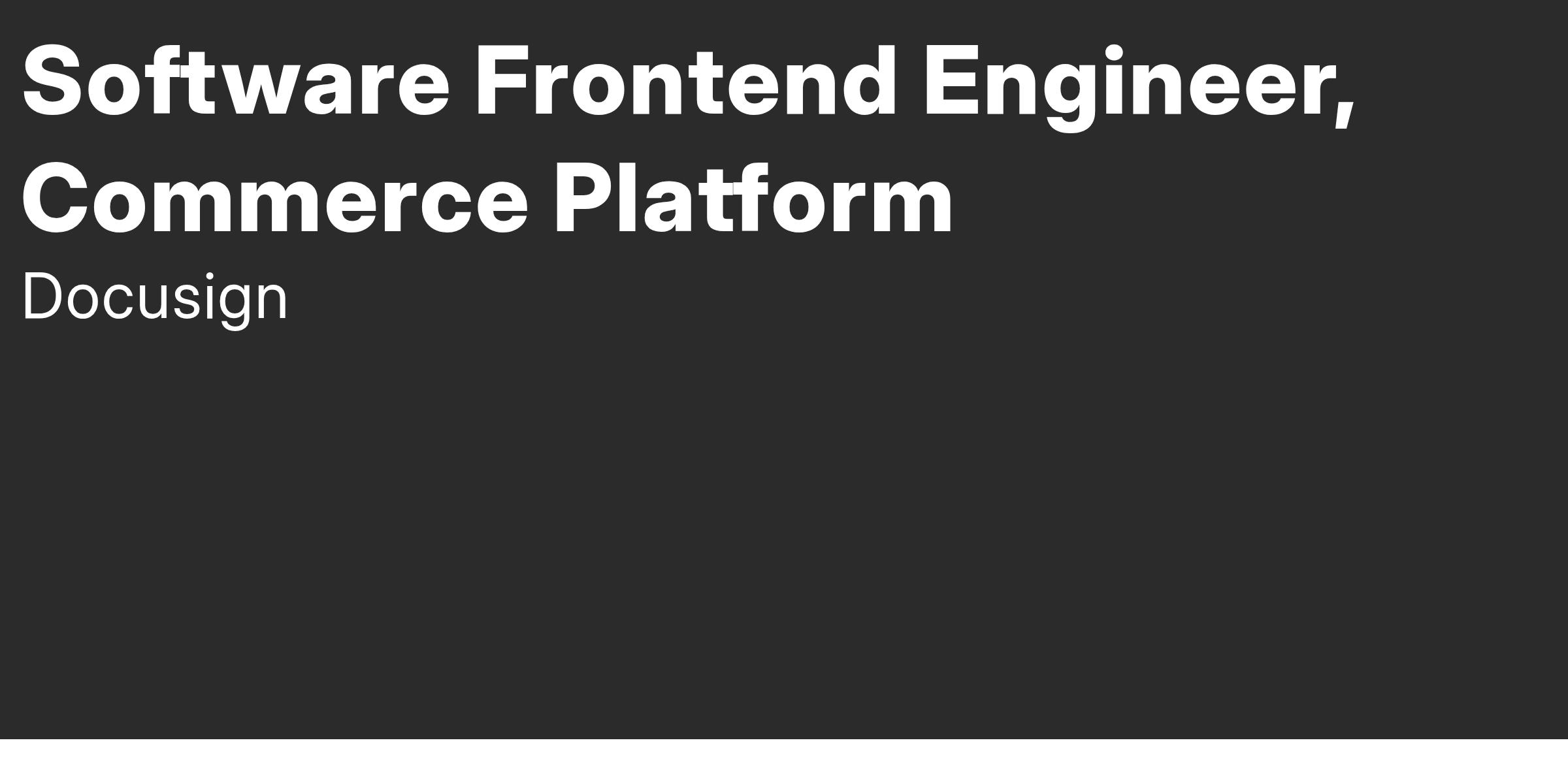 Docusign is looking for a highly motivated Software Frontend Engineer to join our Product-Led Growth commerce experiences team. This person will work in a close knitted development Pod of 4-6 frontend engineers to develop, test, and support features and experimentation on ecom.docusign.com and adjacent experiences.