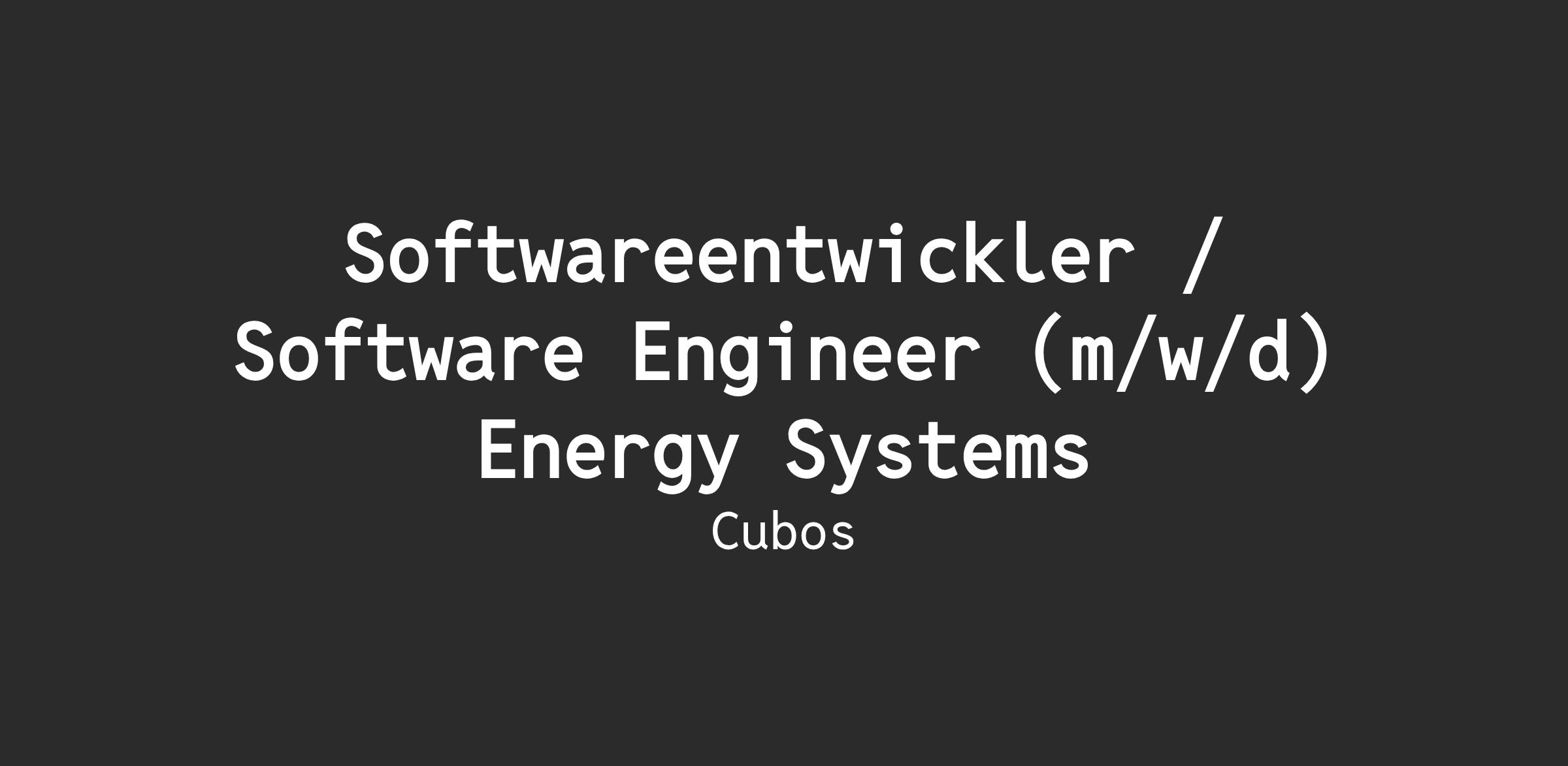 CUBOS.Connect und CUBOS.Energy eine hauseigene Software zur Verwaltung und Abrechnung von Ladeinfrastruktur. Unser Ziel ist es, den Betreibern von einzelnen Ladestationen und ganzen Ladeparks die bestmögliche Lösung anzubieten. Wir suchen Verstärkung für die Entwicklung unserer Software. Wenn Du Lust hast, mit uns gemeinsam die Mobilität von Morgen zu prägen und für neue Technologien und Systeme brennst, dann bist Du bei uns genau richtig.