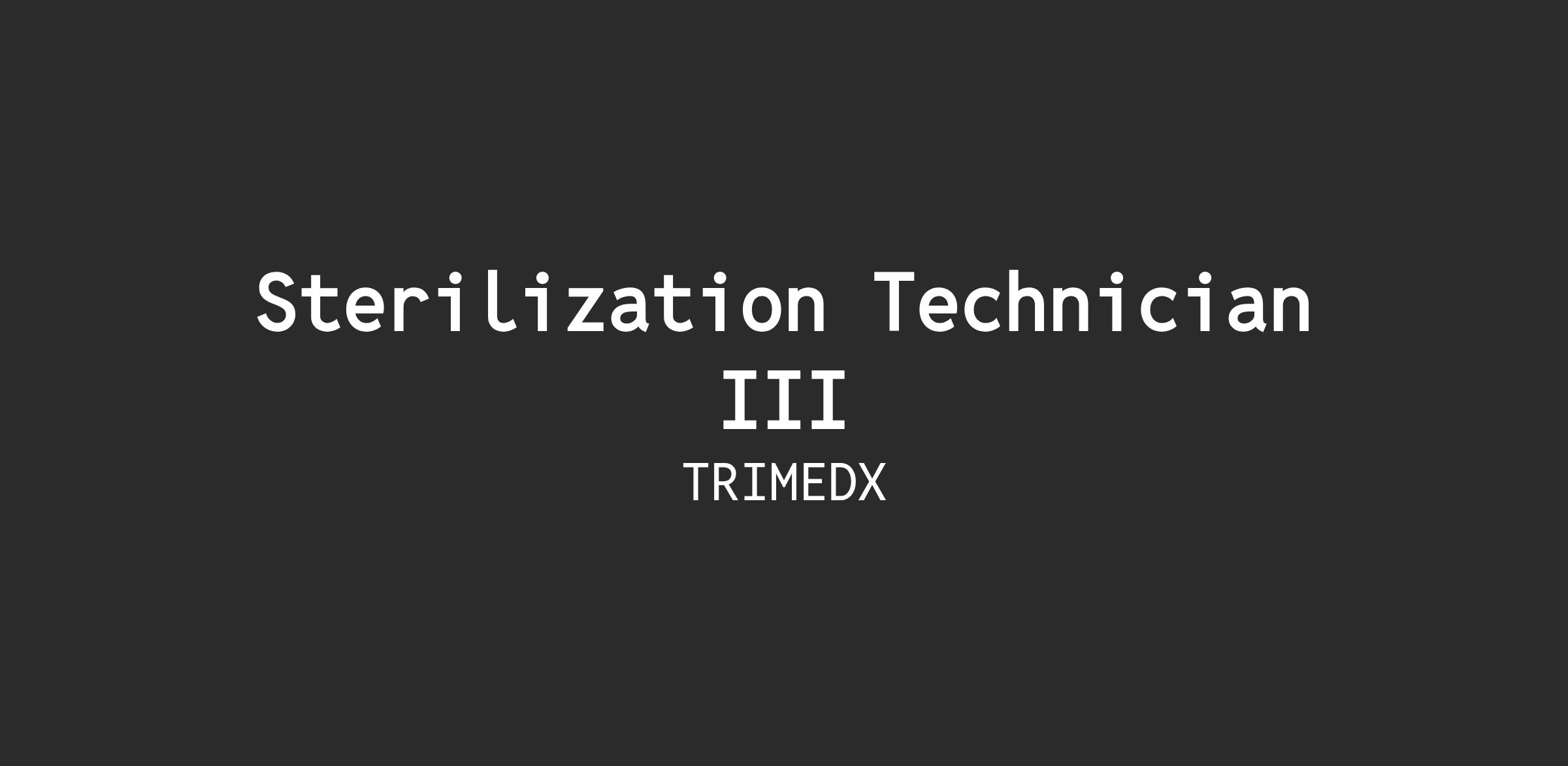 The Sterilization Technician III installs, inspects, troubleshoots, repairs, calibrates, and verifies the performance of complex sterilization and decontamination equipment and systems, with minimal supervision. The Sterilization Technician III ensures regulatory compliance, assists in inventory management, and may serve as an advisor to other TriMedx personnel on technical matters concerning specialty equipment. The individual demonstrates adherence to the TriMedx core values in all professional interactions by showing respect to all people, creating real value, initiating meaningful change, and exhibiting integrity.