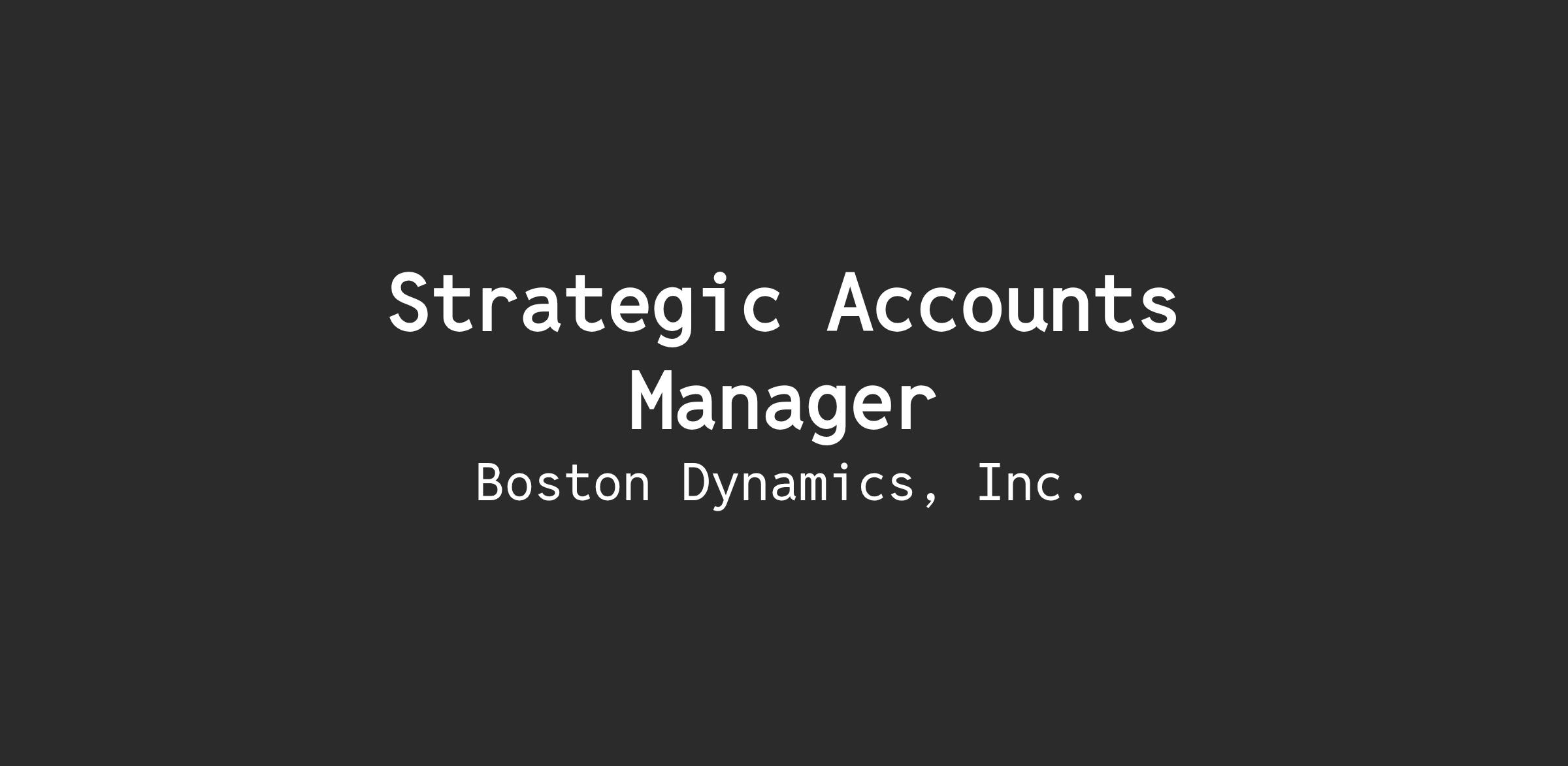 Boston Dynamics has an opening for a Key Account Manager within our Spot Robotics team. The Key Accounts Manager will lead relationships with major accounts in the LATAM market that are critical to the early, successful growth of our Spot robotics business and to building and sustaining relationships with new customers. As this role will focus regionally on LATAM market, it will require occasional travel and working in those time zones. In this highly visible role, the right candidate will be a core part of the Boston Dynamics team create the future of industrial Inspection Robotics!