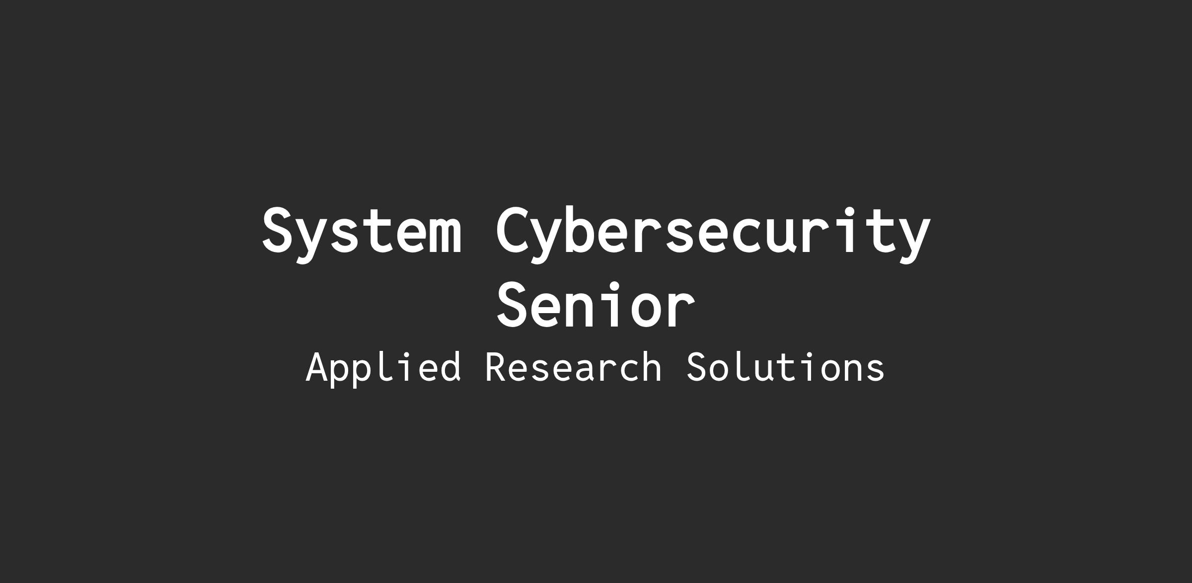 Applied Research Solutions is seeking a full-time System Cybersecurity III at Lackland AFB-San Antonio, TX