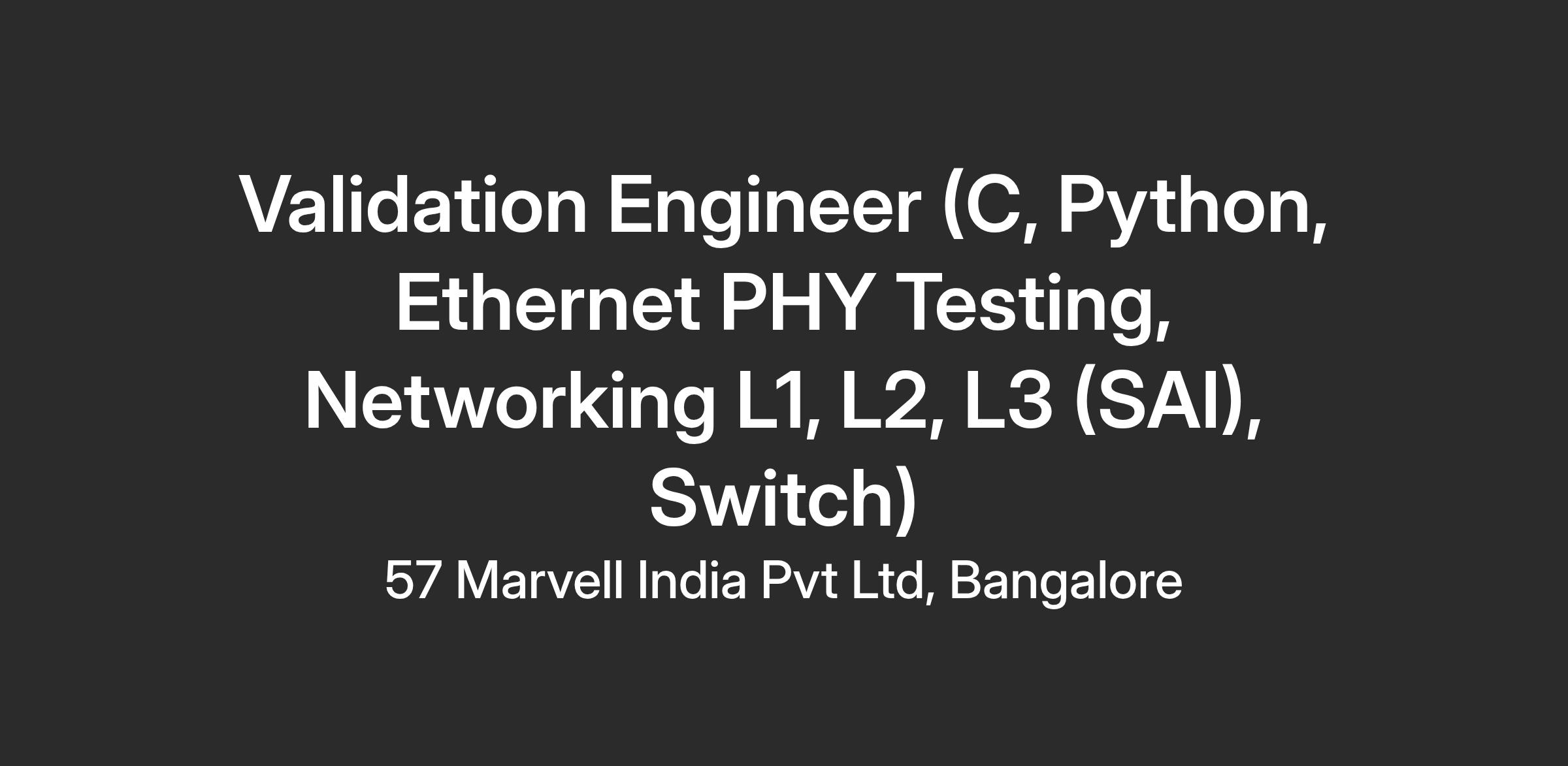 Validation Engineer (C, Python, Ethernet PHY Testing, Networking L1, L2, L3 (SAI), Switch)
